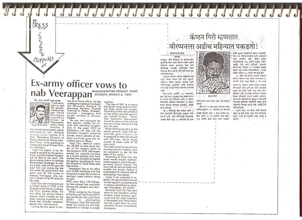 Our confidence and capabilities go to the extent that we dared and offered to trace down, catch or eliminate the Jungle Brigand Veerappan, the man who had murdered 132 men and poached 2,000 elephants. This was made possible only due to the concerted, determined and selfless services rendered by all ranks of our organization.
